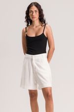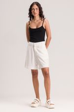 Bermuda Alongada em Alfaiataria com Pregas com passantes no cós e pregas na parte da frente. Fechamento por botão e zíper. Composição: 92% viscose 08% poliéster