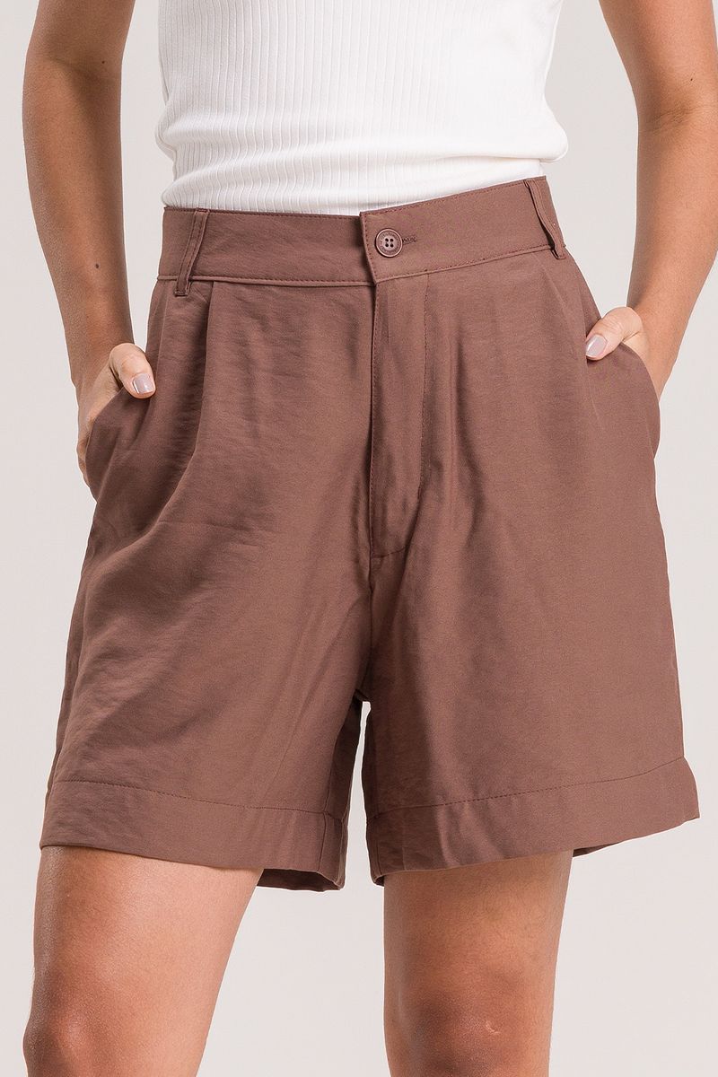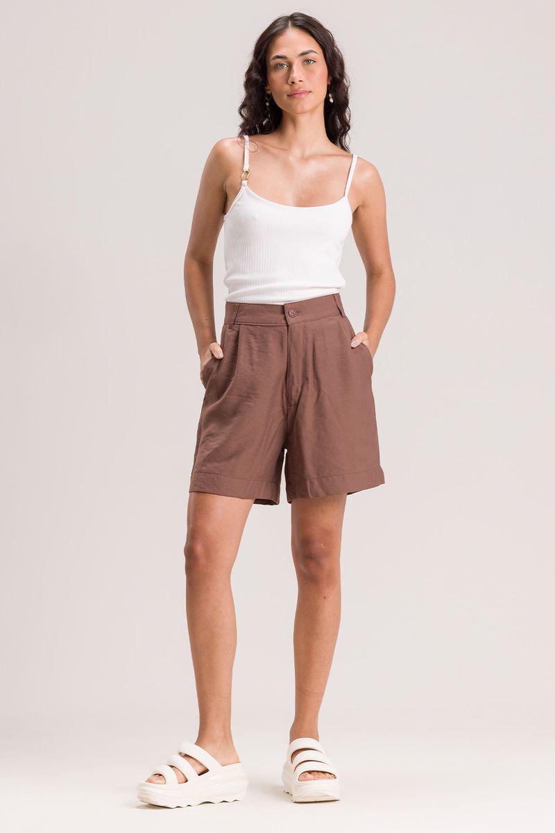 Bermuda Alongada em Alfaiataria com Pregas com passantes no cós e pregas na parte da frente. Fechamento por botão e zíper. Composição: 92% viscose 08% poliéster