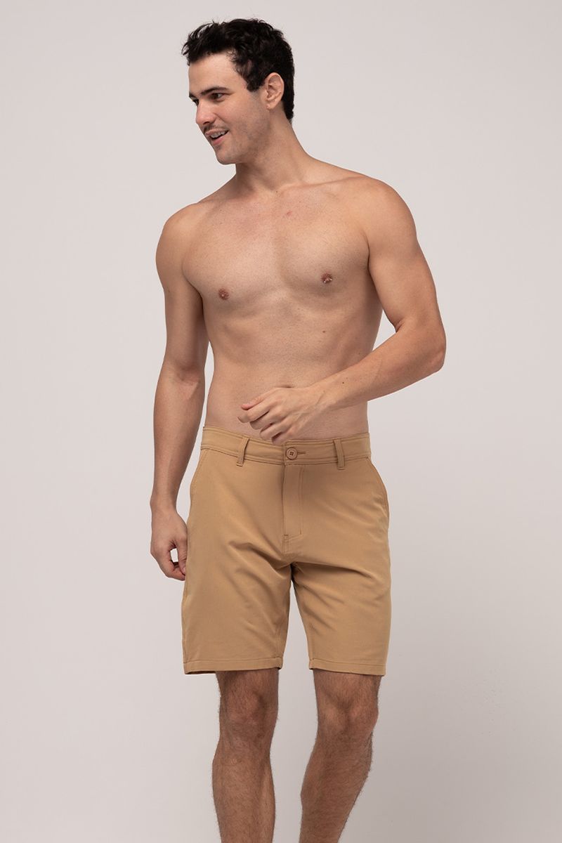 Bermuda adulto modelo passeio, tecido liso, cós clássico com botão e zíper. possui bolsos frontais e traseiro. Composição: 92% POLIéster 08% ELASTANO