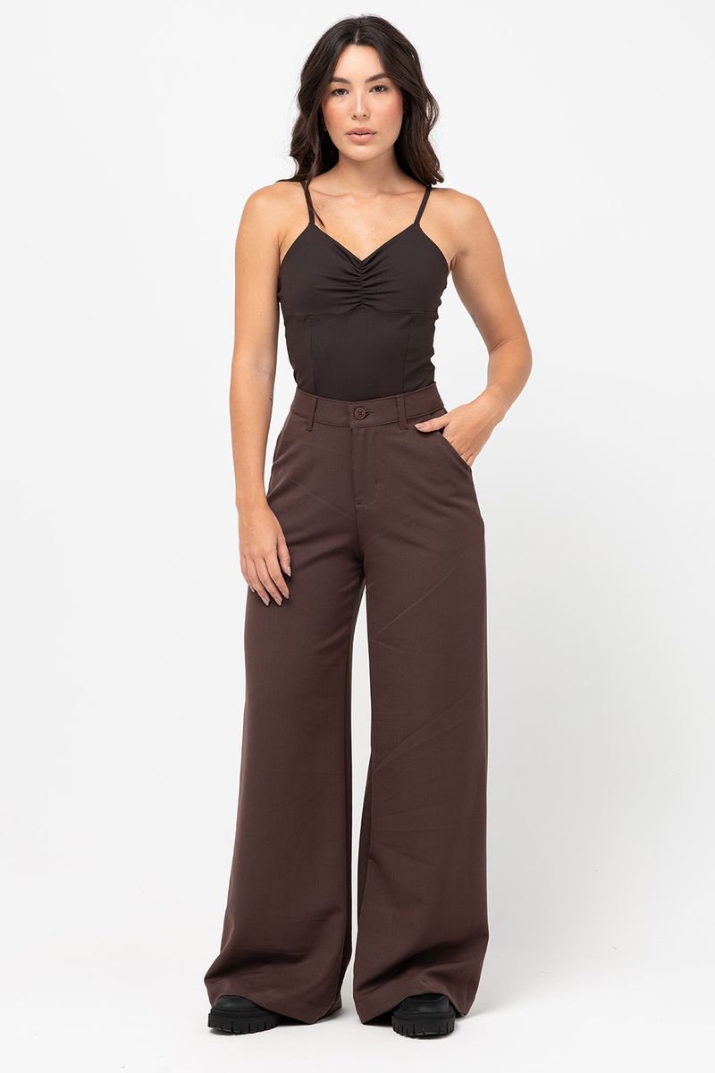 calça pantalona com corte em alfaiataria ,bolsos frontais e fechamento com zíper lateral. composição: 70% viscose 26% poliéster 4% elastano.