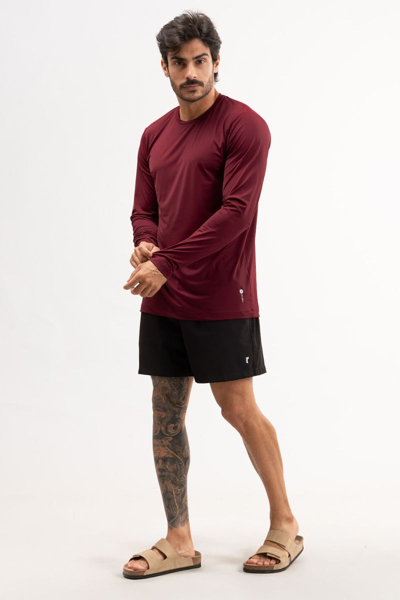 camisa masculina com proteção uv fator 50+ com detalhe na gola. composição: