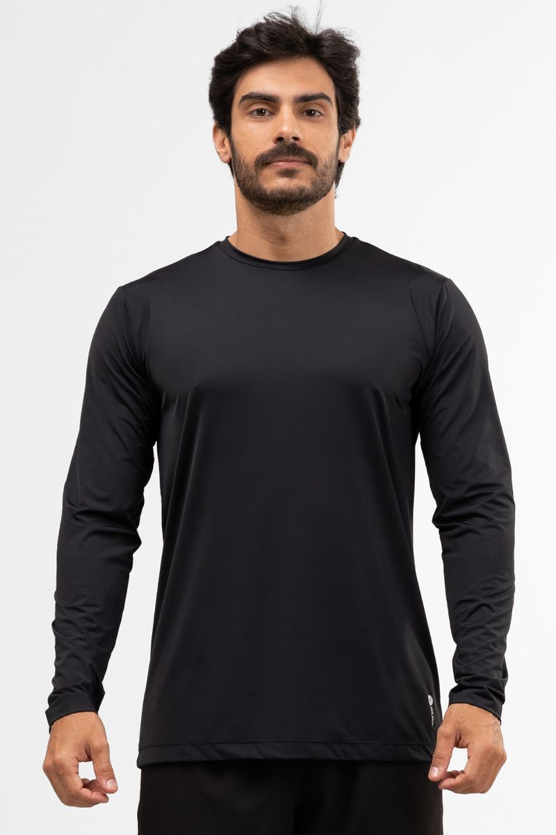camisa masculina com proteção uv fator 50+ com detalhe na gola. composição: