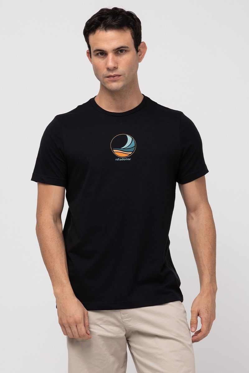 camiseta modelagem básica com estampa frontal. composição: 100% algodão