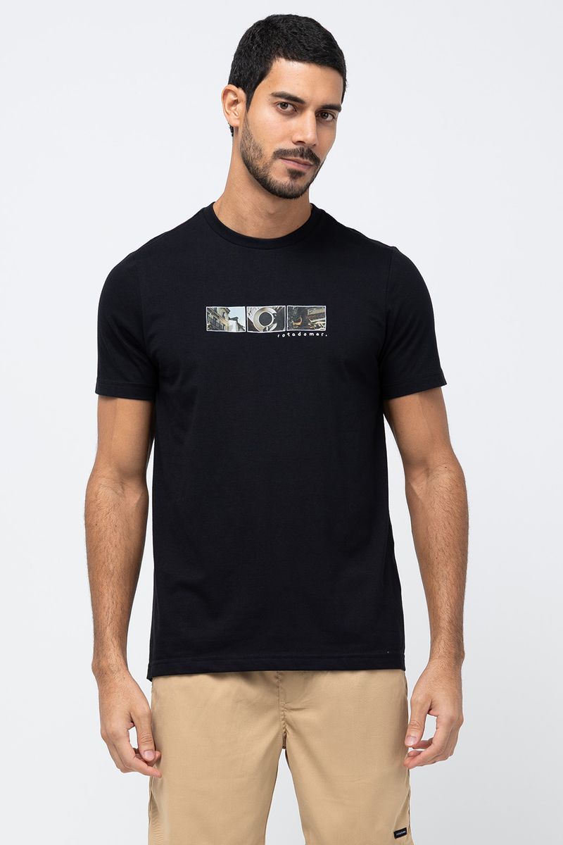 camiseta modelagem básica com estampa frontal. composição: 100% algodão