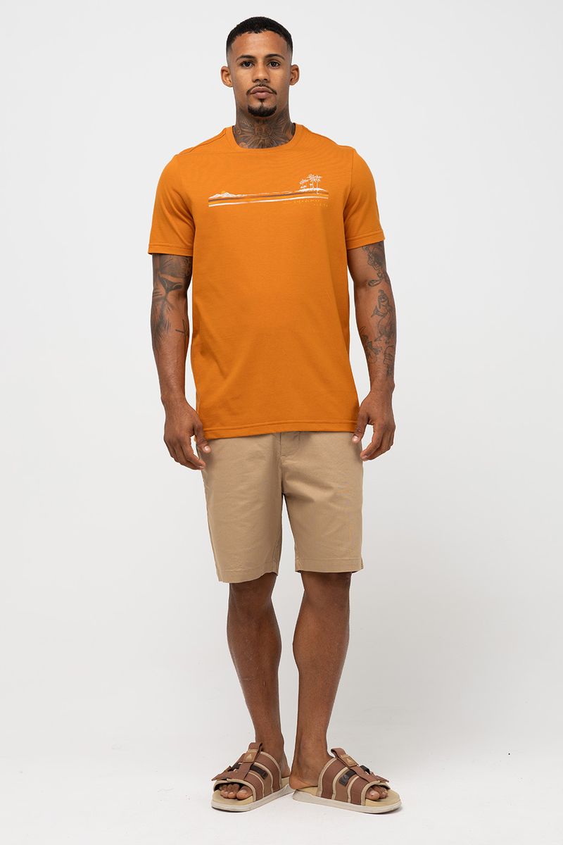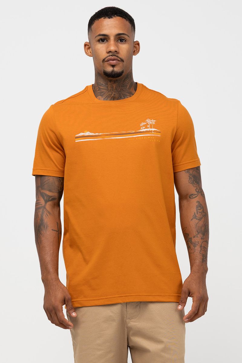 camiseta modelagem básica com estampa frontal. composição: 100% algodão