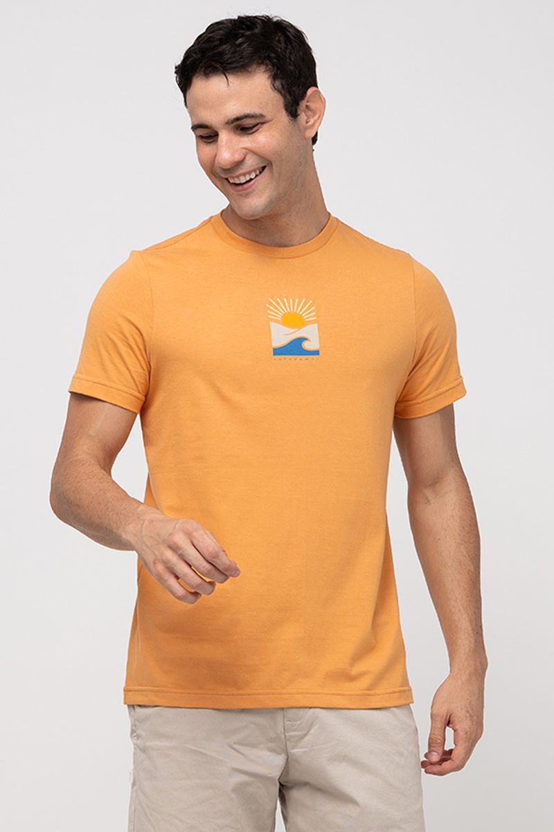 camiseta modelagem básica com estampa frontal. composição: 100% algodão