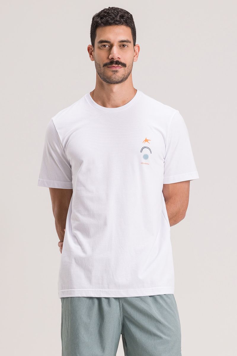camisETA MODELAGEM BÁSICA com estampa frontal e nas costas. composição: 100% algodão