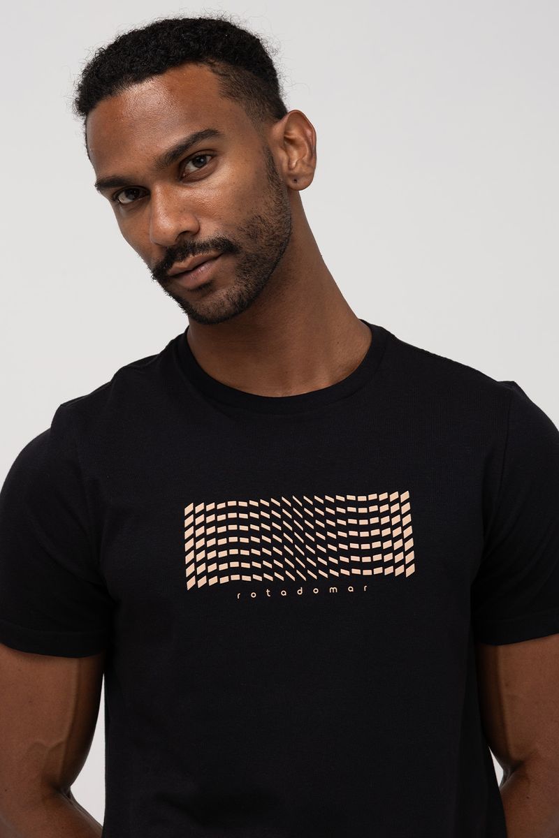 camiseta modelagem básica com estampa frontal. composição: 100% algodão