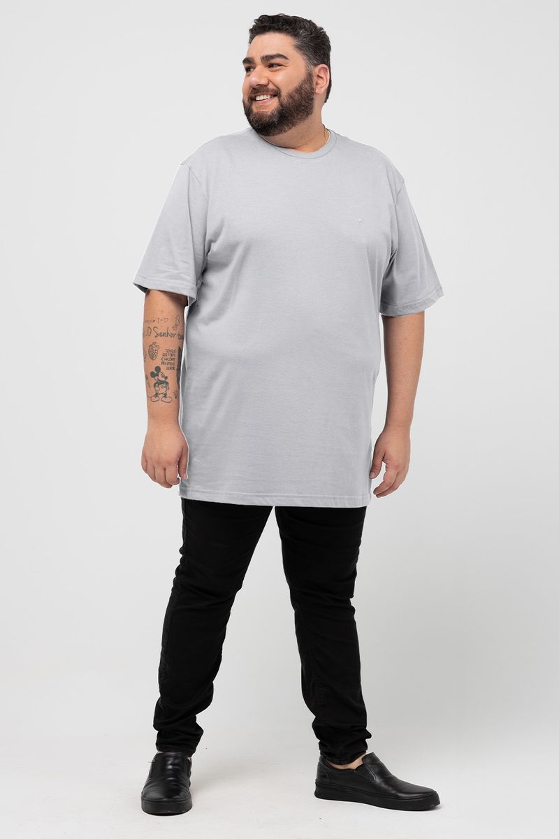 camiseta básica leve plus size, tecido liso e bordado localizado. composição: 100% algodão