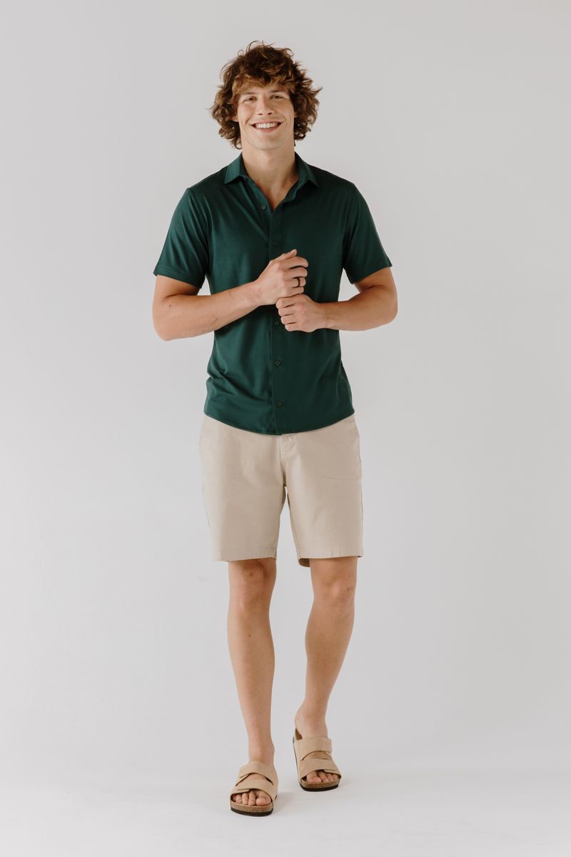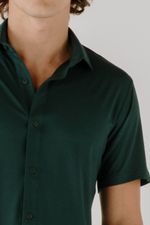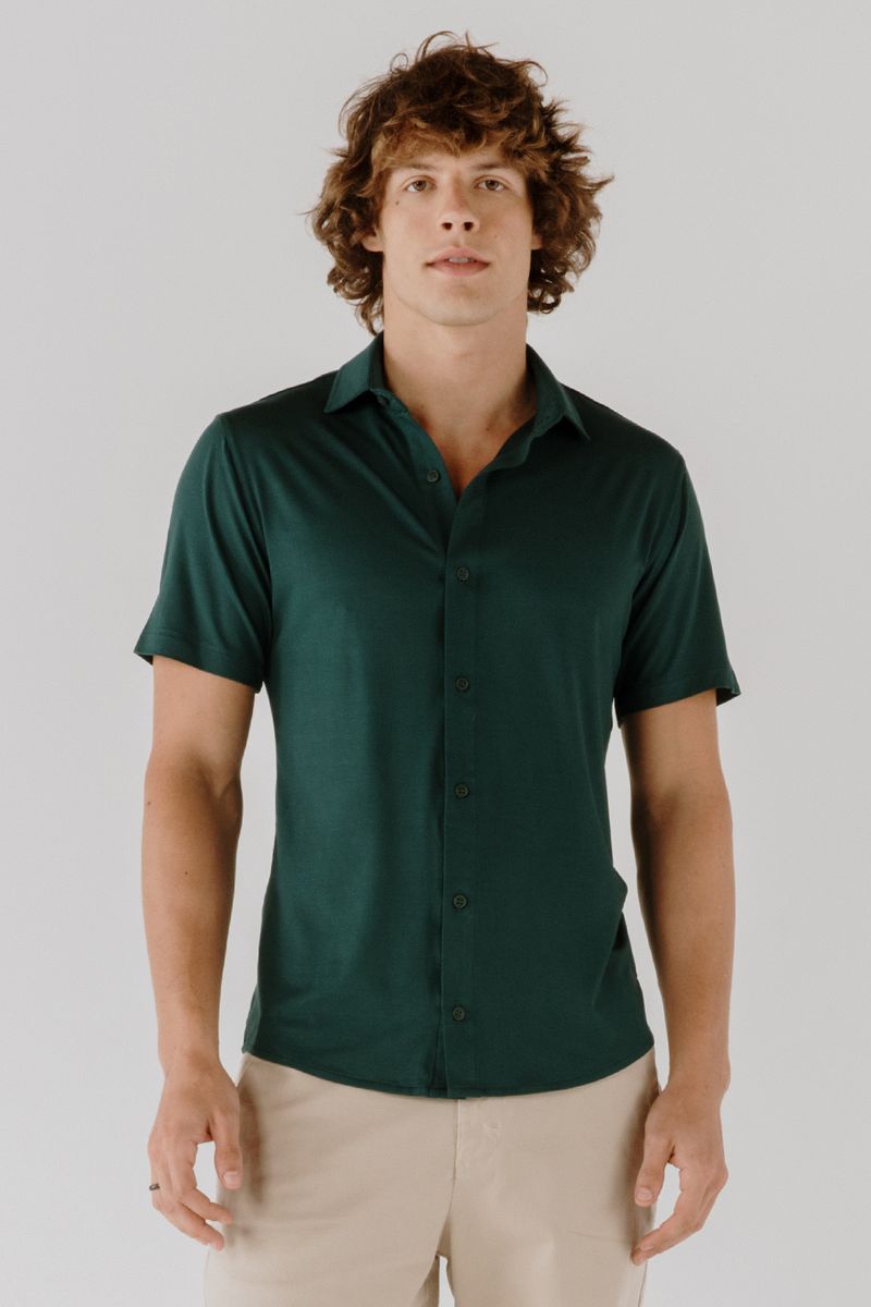 camisa manga curta, tecido liso com fechamento em botões. composição: 91% viscose 09% elastano