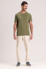 camiseta em tecido diferenciado com bordado localizado  e manga raglan com detalhes. composição: 66% algodão 34% poliéster