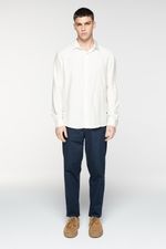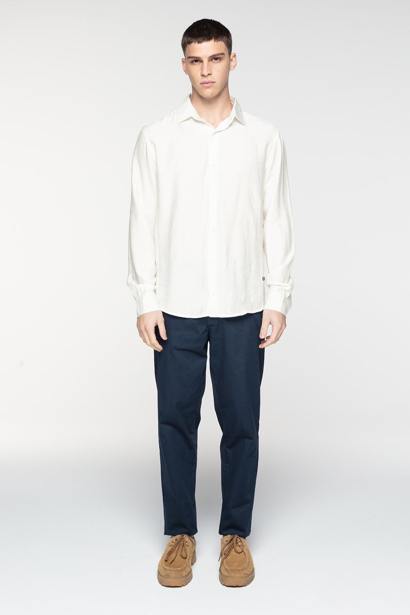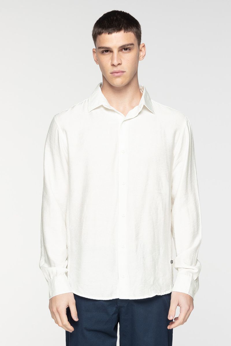 camisa masculina casual em modelagem slim, com tecido diferenciado, botões, gola padrão e manga longa. composição: 87% viscose 13% poliamida