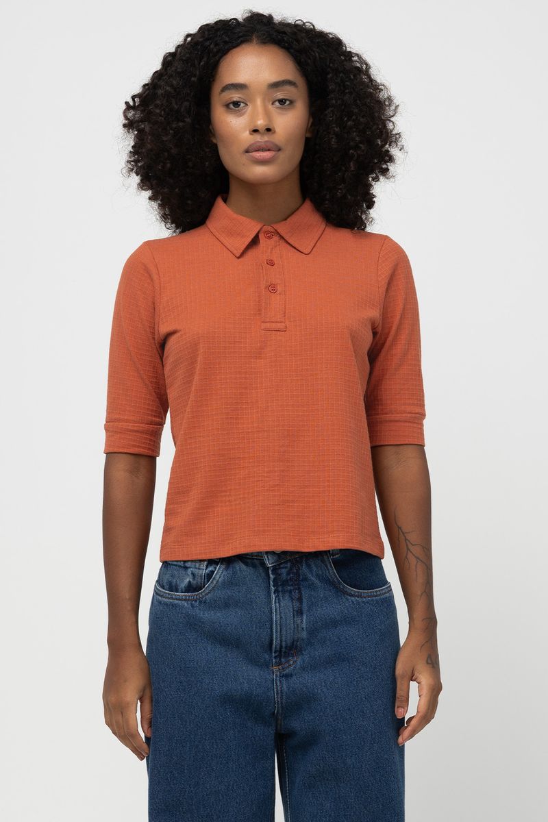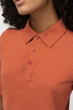 gola polo feminina, tecido diferenciada, mangas, gola com fechamento em botões. composição: 84% algodão 16% poliéster
