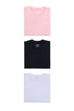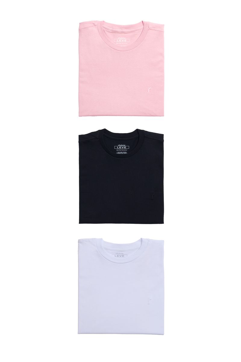 kit três camisas básicas 100% algodão com logo localizada. cores: rosa legus, preto e branco. por ser um kit, as peças não podem ser trocadas separadamente.