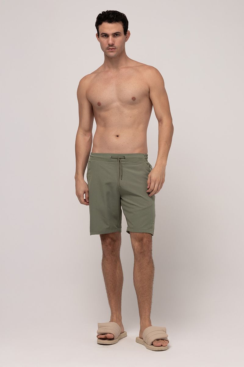 bermuda adulto modelo clássico, tecido liso, cós clássico com elástico e cadarço. possui bolsos frontais e bolso traseiro em zíper. composição: 95% poliéster 05% elastano.