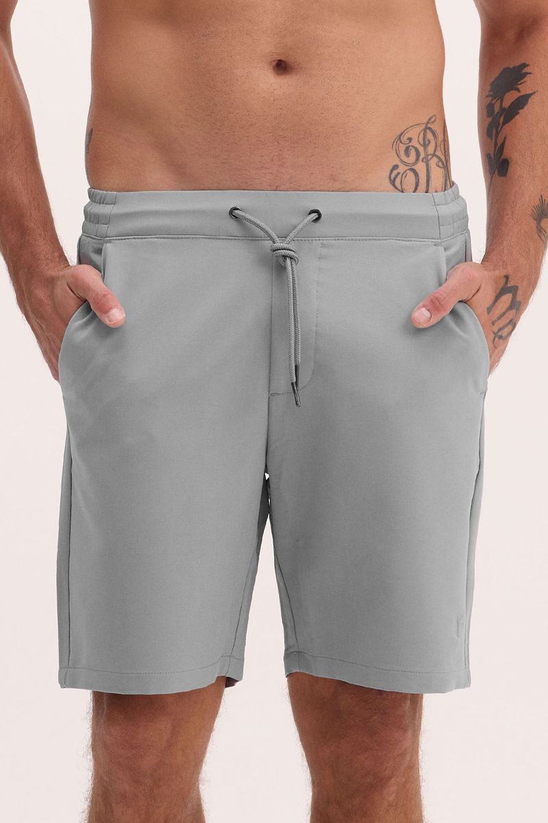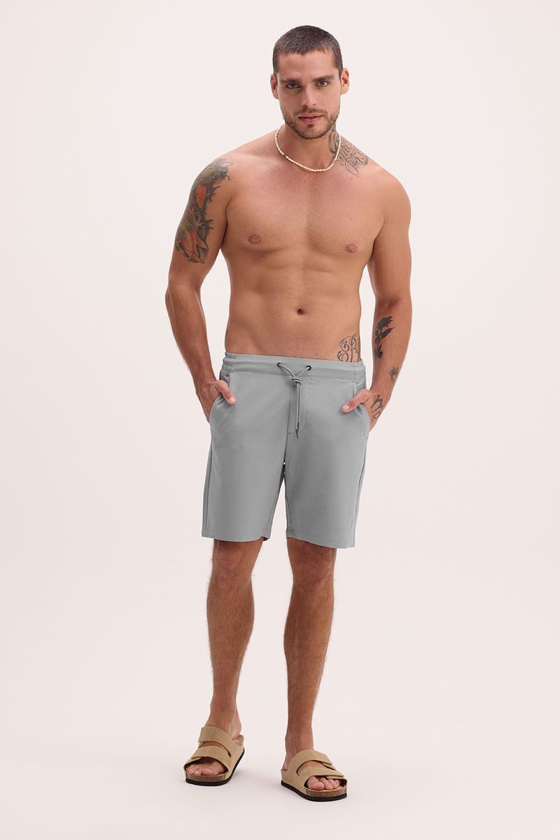 bermuda adulto modelo clássico, tecido liso, cós clássico com elástico e cadarço. possui bolsos frontais e bolso traseiro em zíper. composição: 95% poliéster 05% elastano.