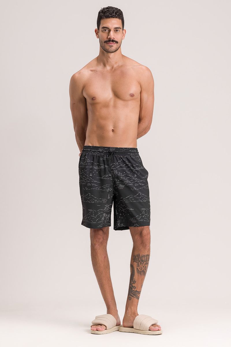 short adulto modelagem longa, com tecido estampado e cós de elástico com cadarço para regulagem. possui bolsos frontais e traseiro. composição: 90% poliéster 10% elastano