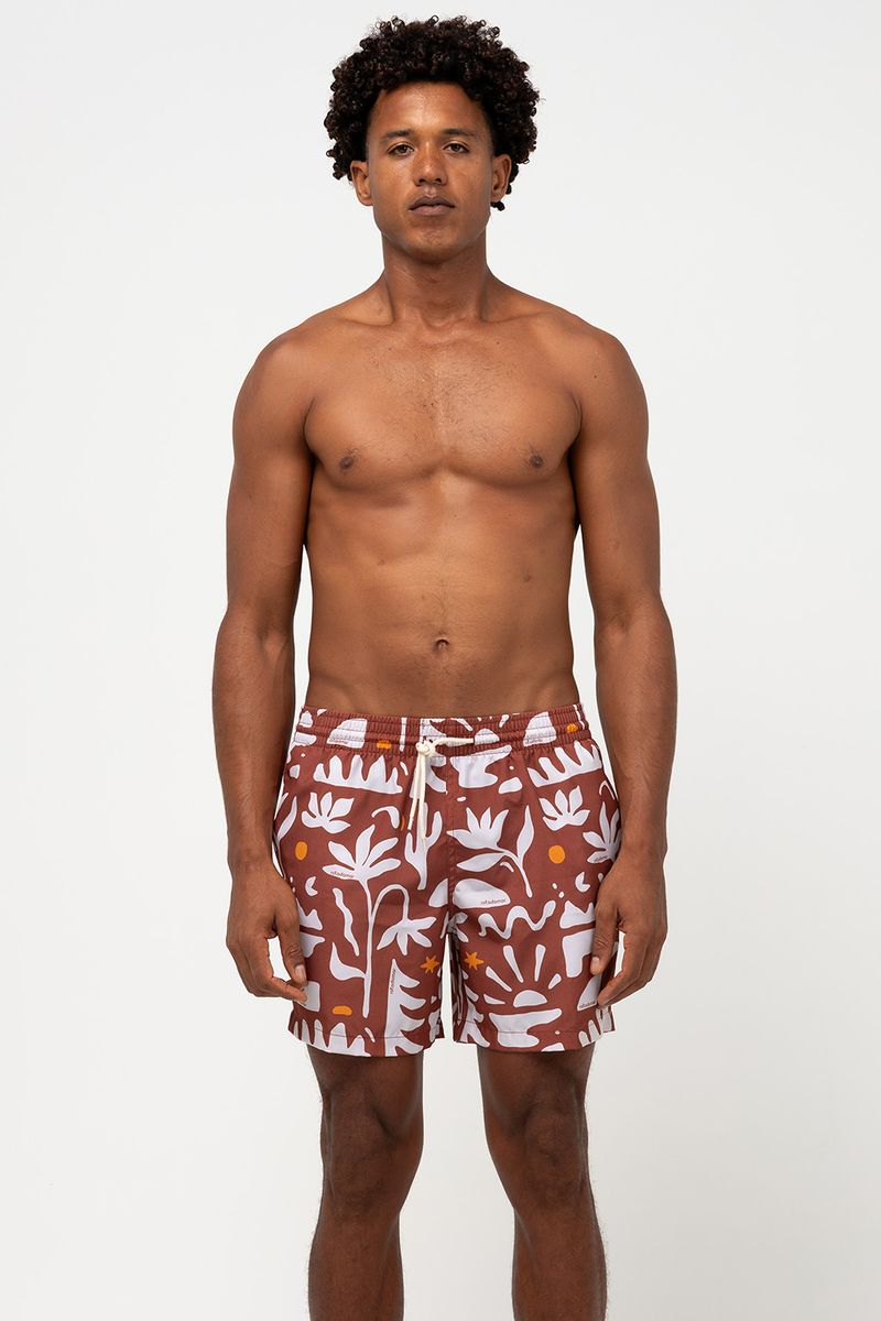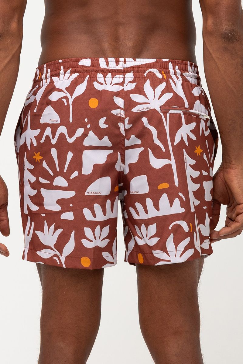 short masculino diferenciado modelo volley, tecido estampado com cós de elástico e cadarço, bolsos frontais e traseiro. composição: 90% poliéste 10% elastano