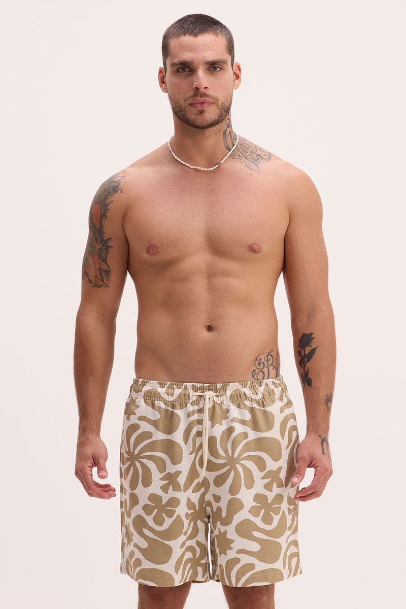 short masculino modelo volley. tecido estampado com cós de elástico e cadarço, bolsos frontais e bolso traseiro. composição: 50% ALGODÃO 29% VISCOSE 15% MODAL 06% LINHO