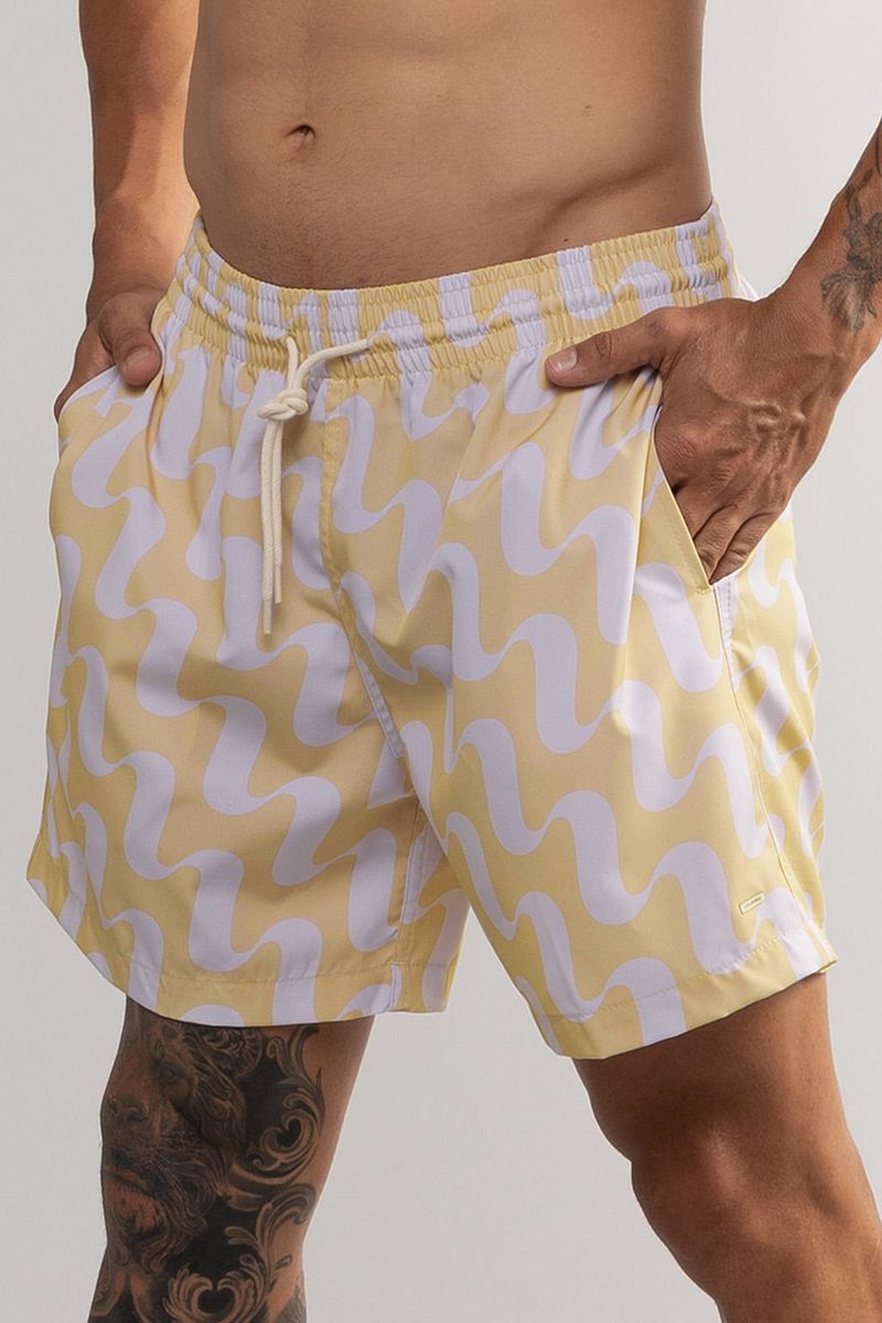 short masculino modelo volley. tecido estampado com cós de elástico e cadarço, bolsos frontais e bolso traseiro. composição: 90% poliéster 10% ELASTANO.
