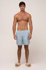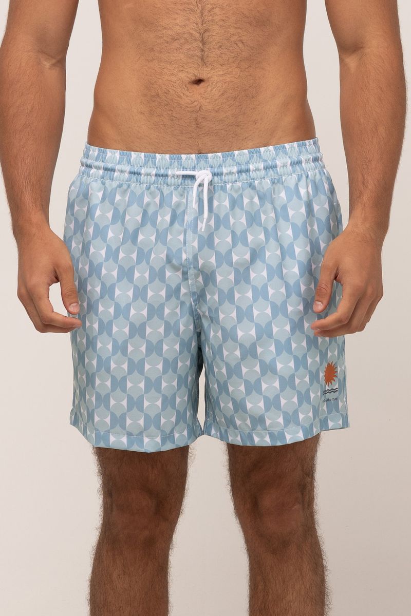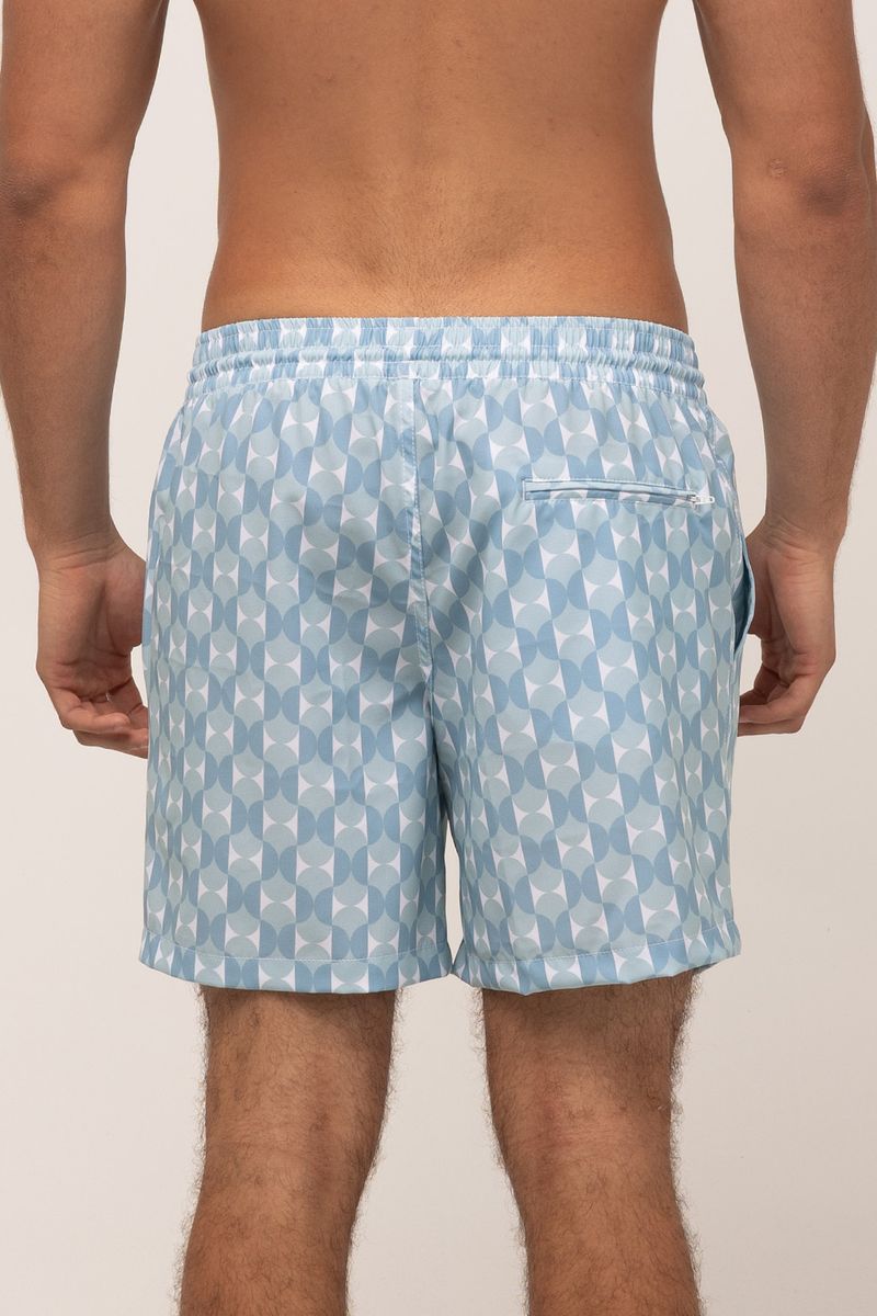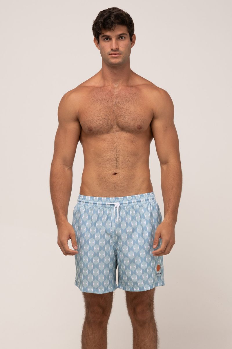 short masculino modelo volley. tecido estampado com cós de elástico e cadarço, bolsos frontais e bolso traseiro. composição: 90% poliéster 10% elastano