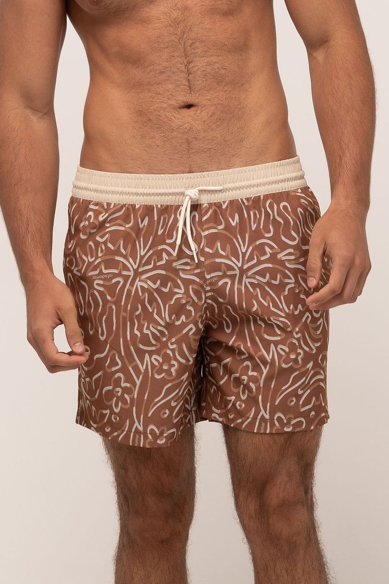 short masculino modelo volley. tecido estampado com cós de elástico e cadarço, bolsos frontais e bolso traseiro. composição: 90% poliéster 10% elastano