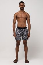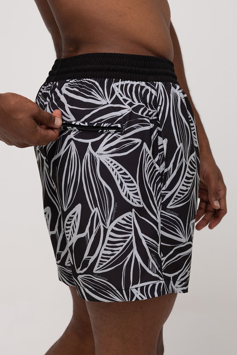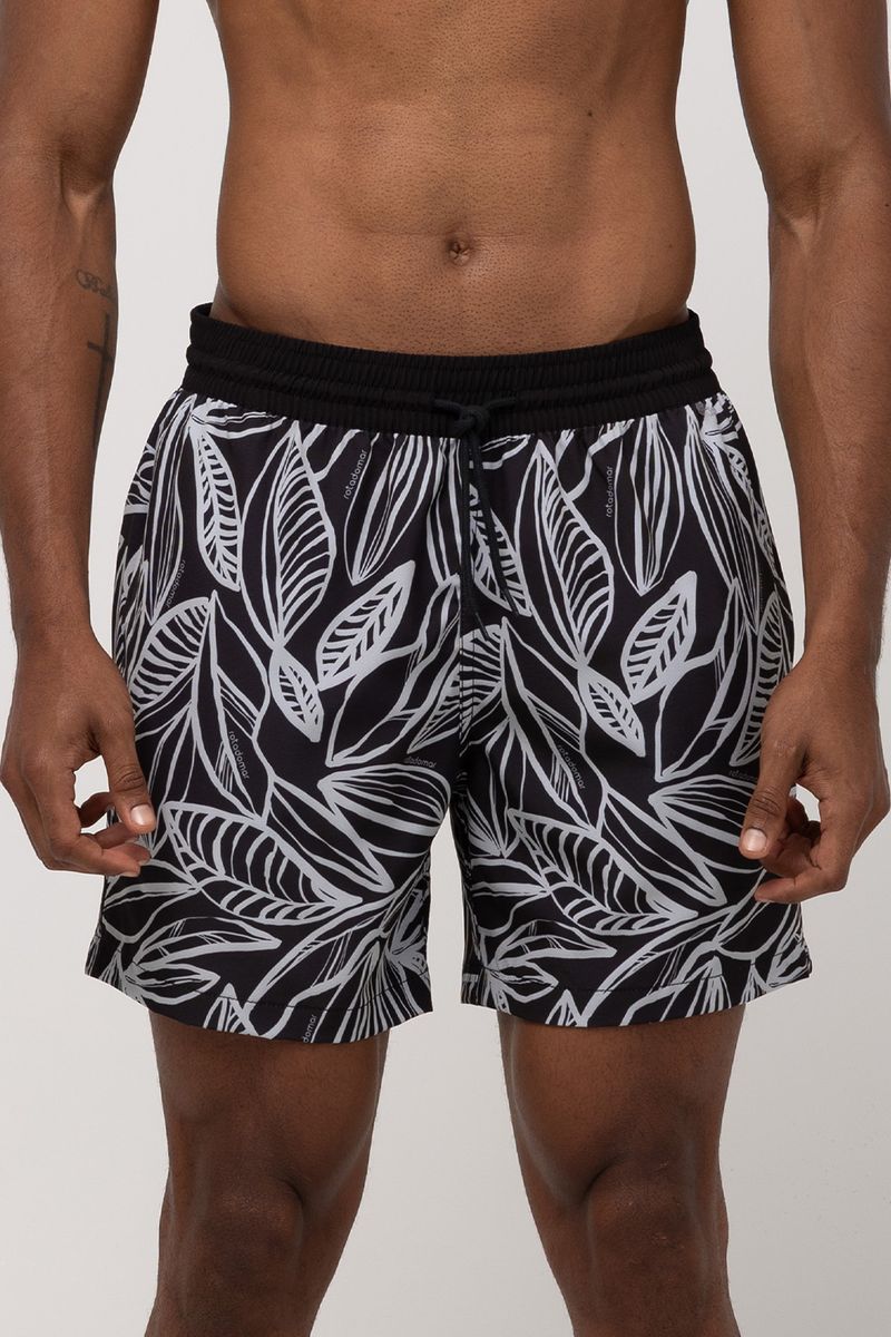 short masculino modelo volley. tecido estampado com cós de elástico e cadarço, bolsos frontais e bolso traseiro. composição: 90% poliéster 10% elastano