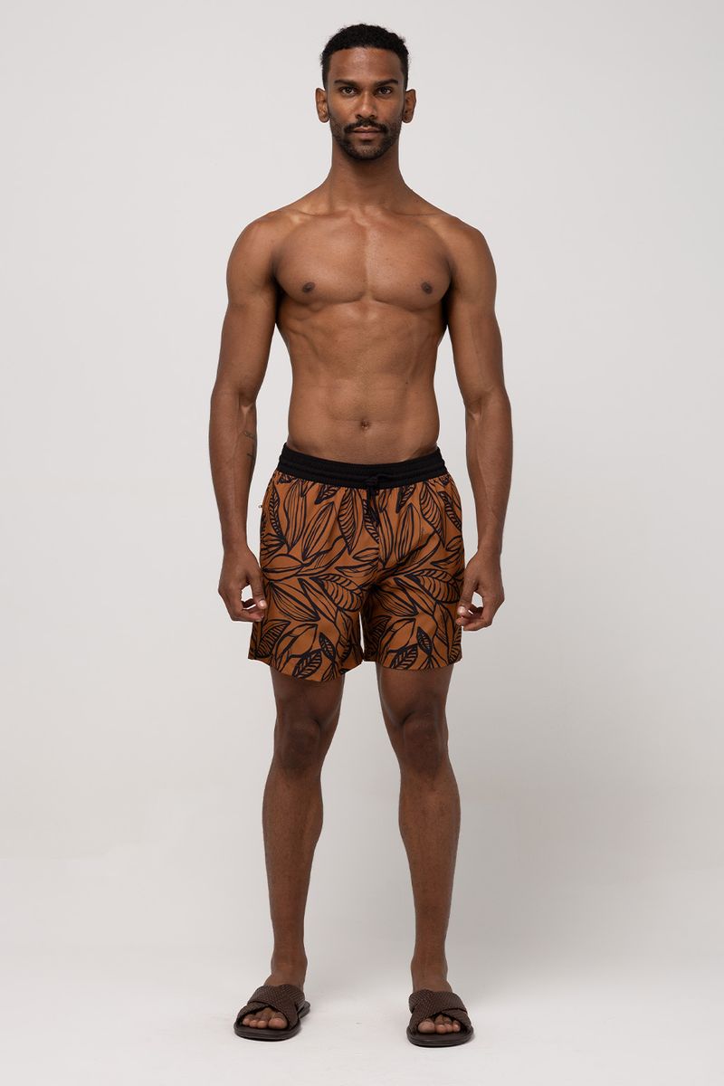 short masculino modelo volley. tecido estampado com cós de elástico e cadarço, bolsos frontais e bolso traseiro. composição: 90% poliéster 10% elastano