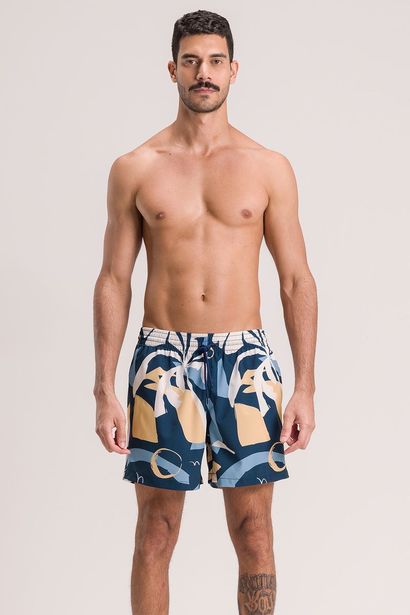 short volley, com tecido estampado e cós de elástico com cadarço para regulagem. possui bolsos frontais e traseiro. composição: 90% poliéster 10% elastano