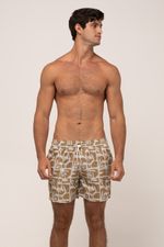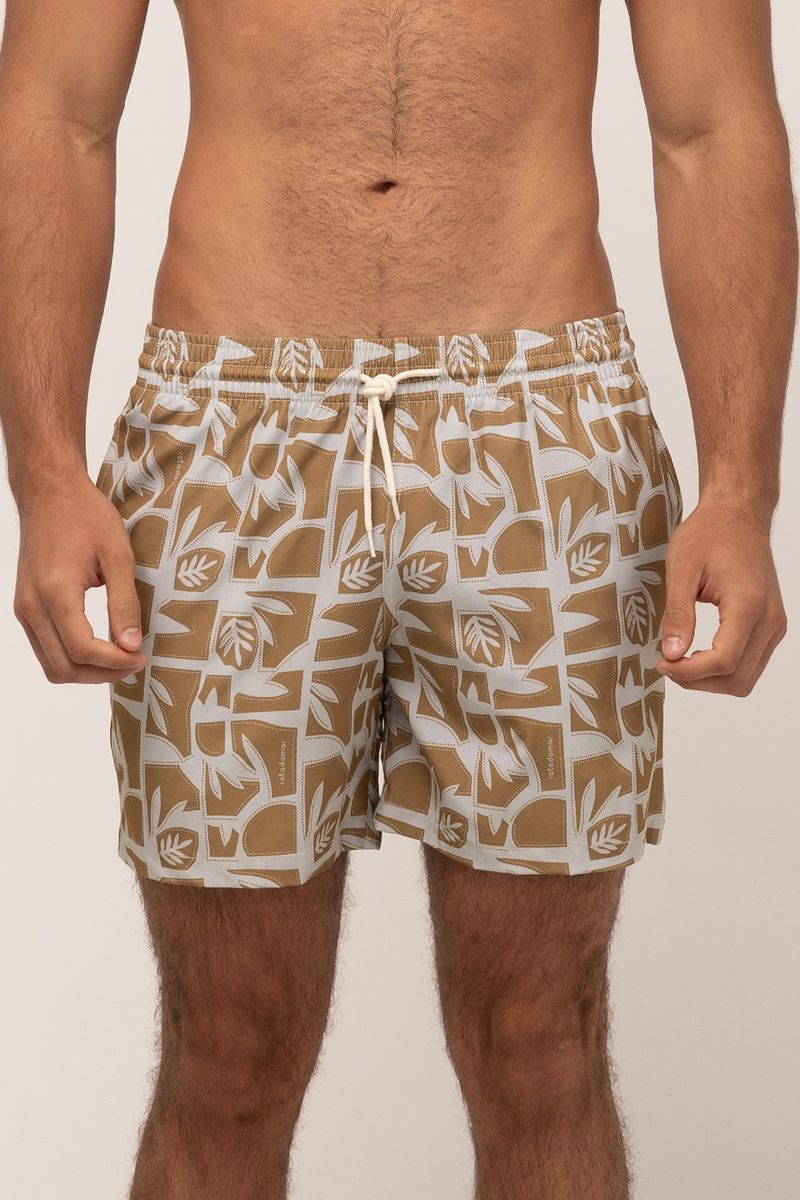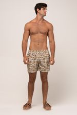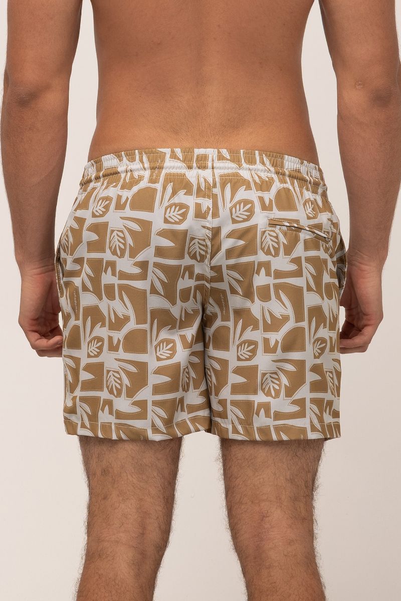short masculino modelo volley. tecido estampado com cós de elástico e cadarço, bolsos frontais e bolso traseiro. composição: 90% poliéster 10% elastano