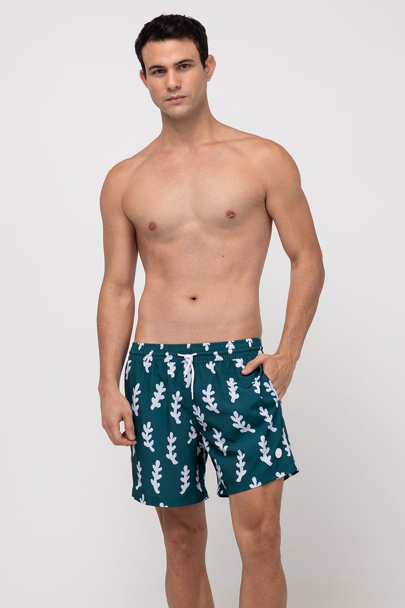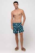 short masculino modelo volley. tecido estampado com cós de elástico e cadarço, bolsos frontais e bolso traseiro. composição: 94% poliéster 06% elastano