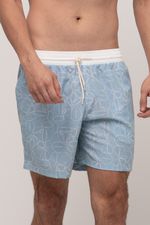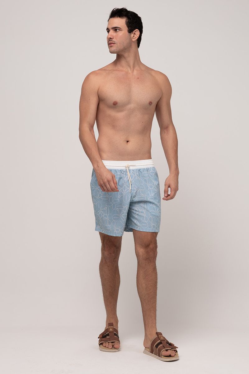 short masculino modelo volley. tecido estampado com cós de elástico e cadarço, bolsos frontais e bolso traseiro. composição: 92% poliéster 08% elastano