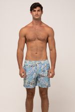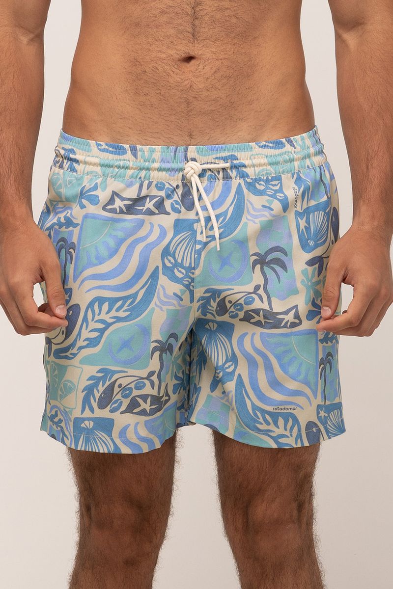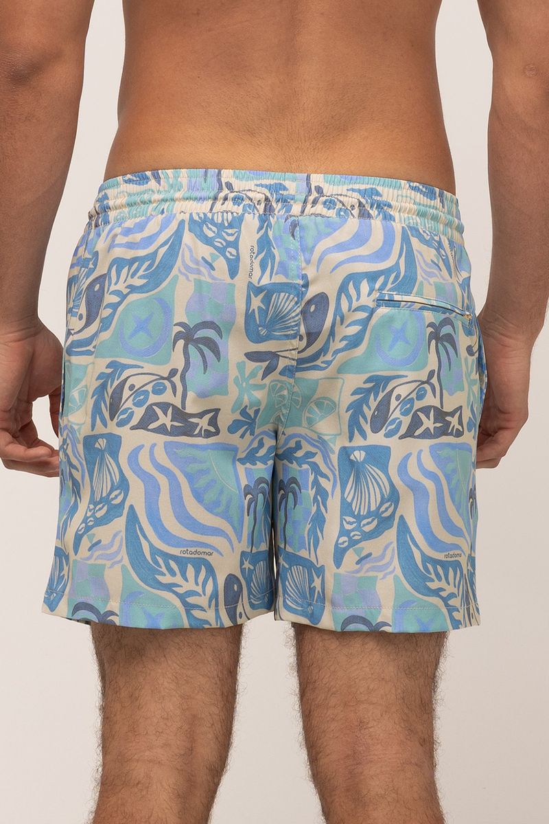 short masculino modelo volley. tecido estampado com cós de elástico e cadarço, bolsos frontais e bolso traseiro. composição: 90% poliéster 10% elastano