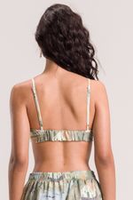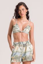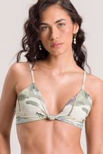 Top feminino estampado com alças reguláveis, elástico nas costas e detalhe em amarração frontal. composição: 100% poliéster